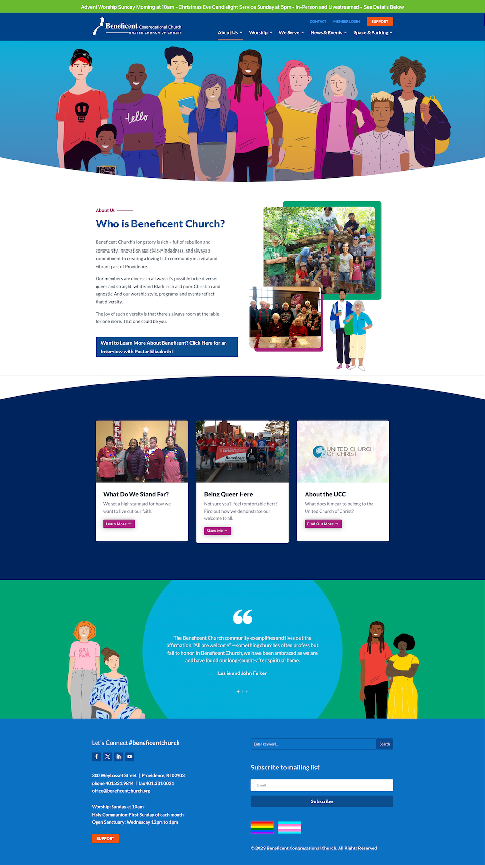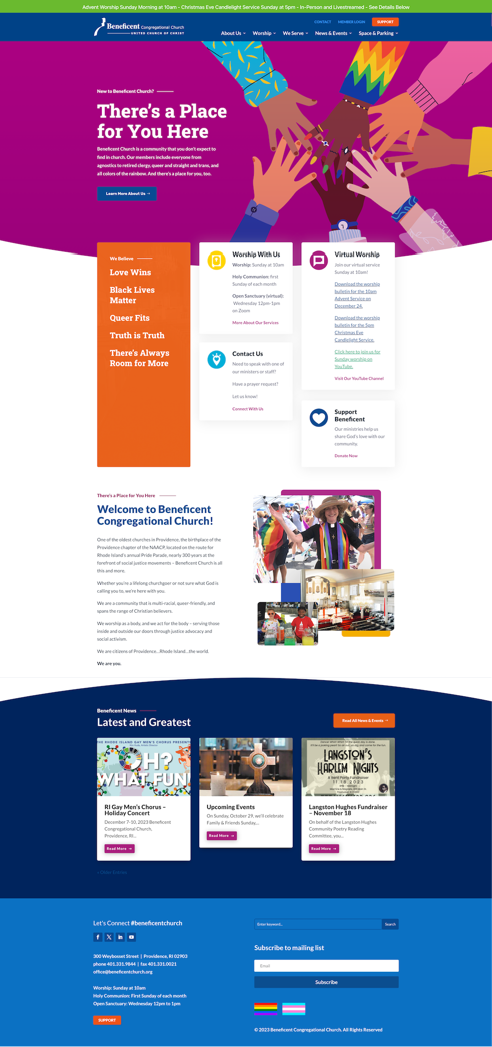 New site build with custom design, graphics & branding for a non-profit church with member portal set-up for private pages.