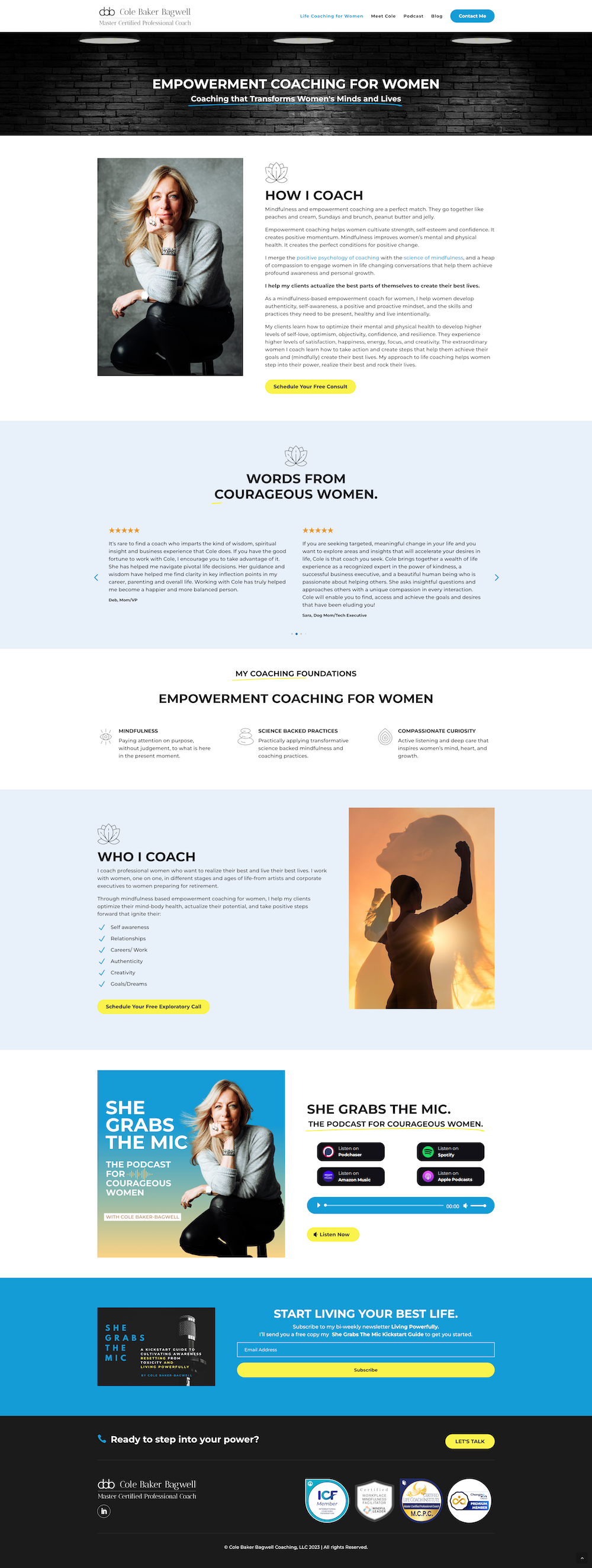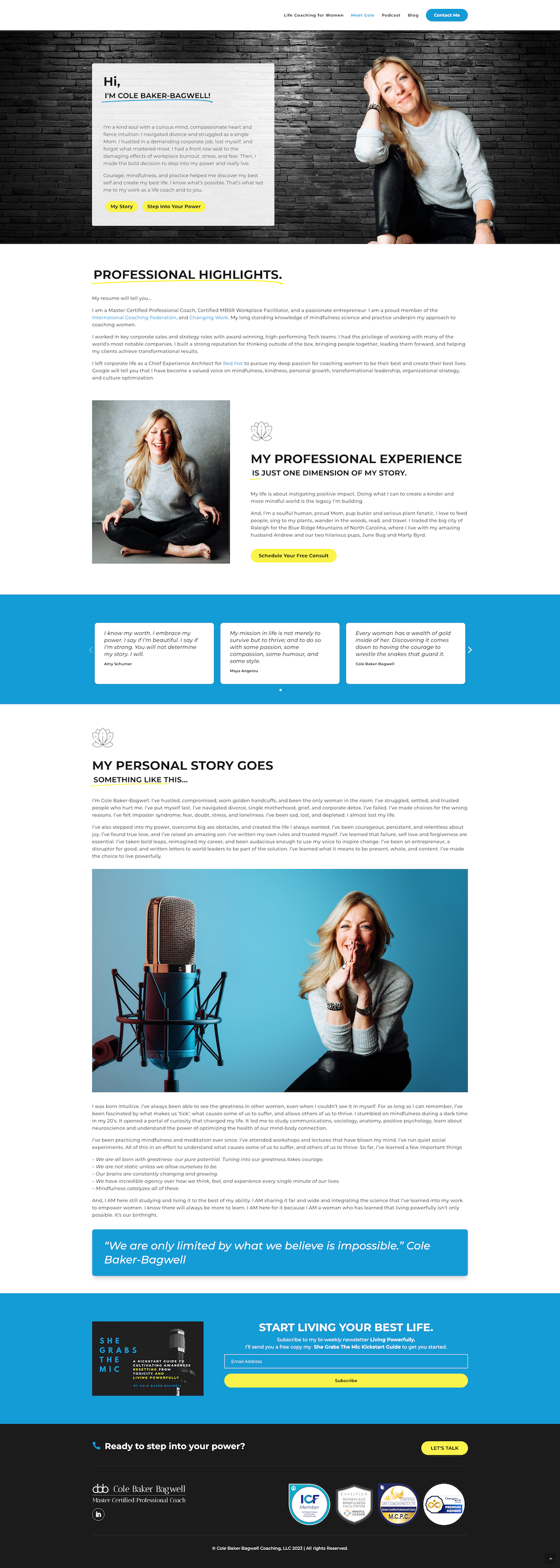 Website re-build for a life coaching and podcast consultant, focused on professional women. Podcast integrations & custom blog set-up.